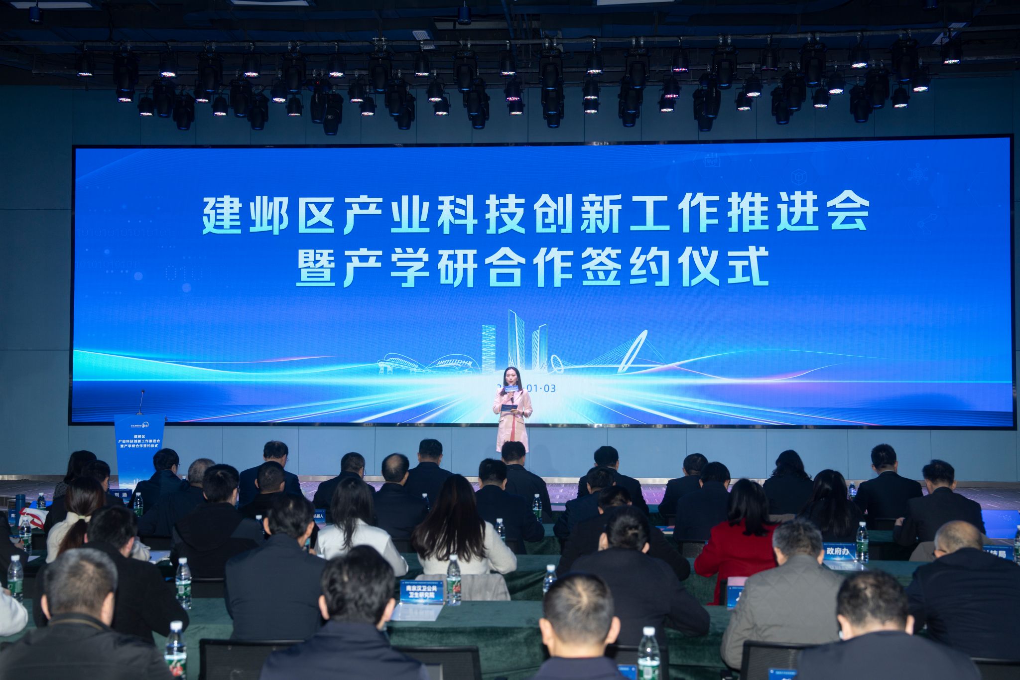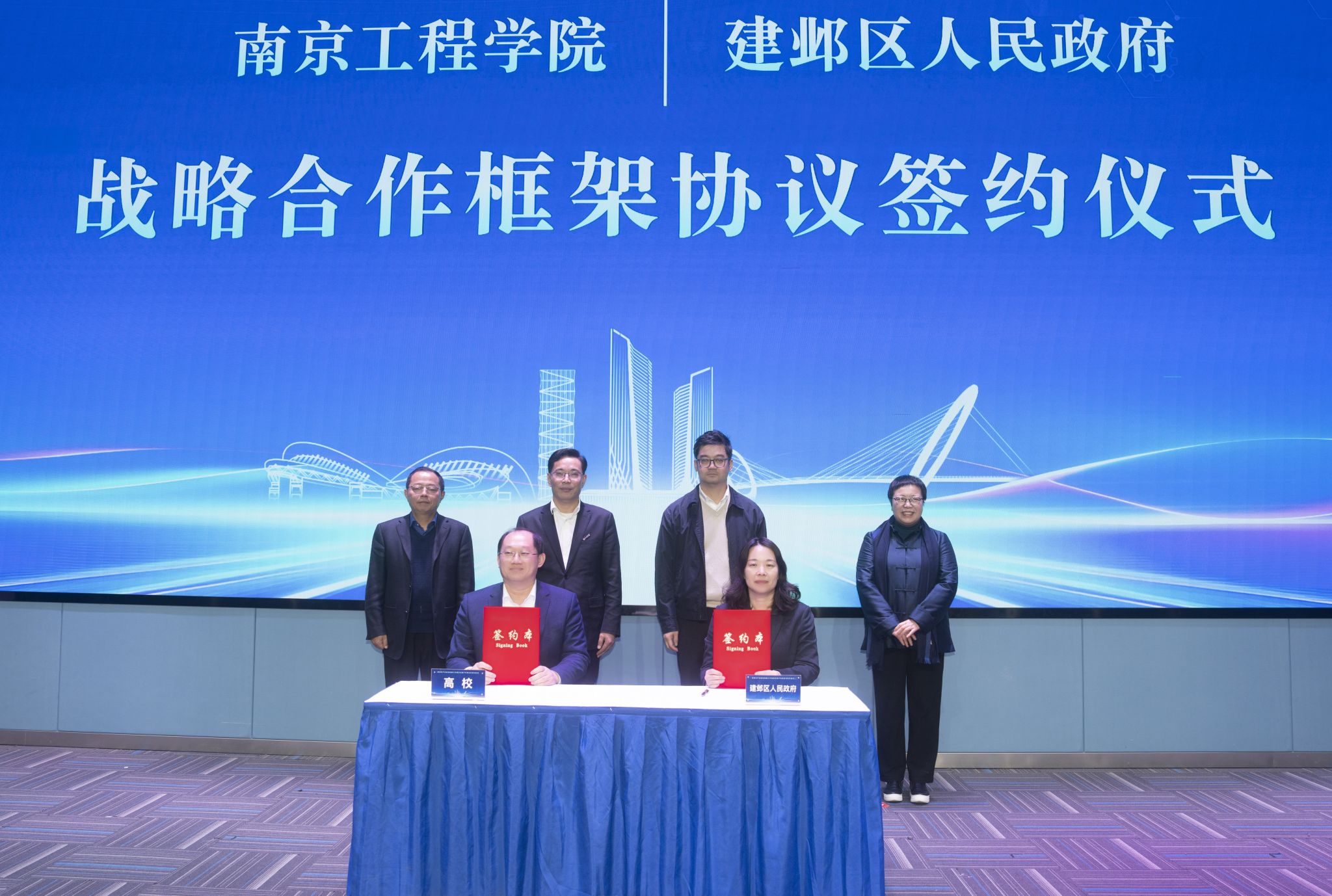 1月3日,在建邺区举办的产业科技创新工作推进会暨产学研合作签约仪式上,我校与建邺区人民政府签署战略合作协议,探索产业科技创新新模式,携手开启“校地合作、共谋发展”新篇章。党委副书记、校长张仰飞应邀出席会议并致辞,党委常委、副校长赵文祥陪同参加活动。